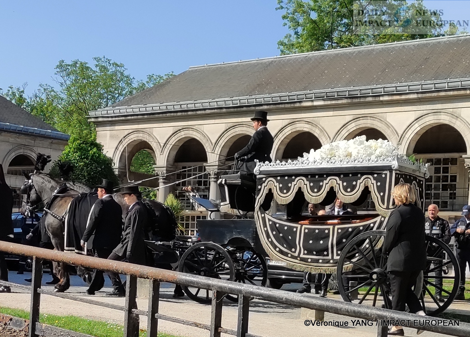 It was not by car that the coffin of the « Grande Zoa » arrived but on board a carriage, decorated with white flowers, drawn by 2 black horses. A final masterful entry of which she alone had the secret.