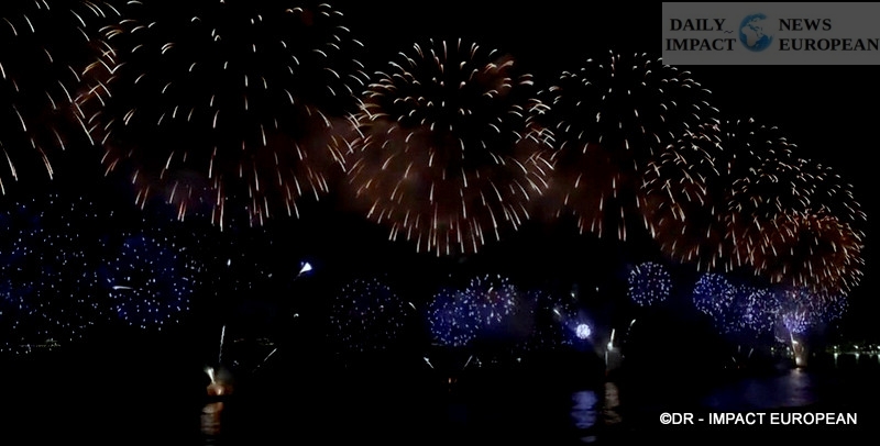 Fireworks are set off 300 m from the beach, from platforms at sea, boats and barges anchored in the port, while illuminated cruise ships enter to spend a night of celebration. Broadcast by giant screens on the beach, the show lasts 15 to 20 minutes.
