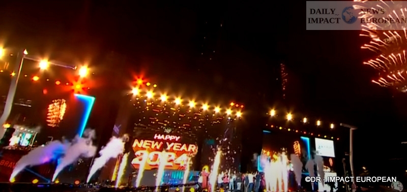 A fireworks display above the Arc de Triomphe at midnight was the high point of the celebration, placed under the sign of the Olympic Games with numerous activities evoking the sporting event. The police immediately began dispersing the avenue. A few months before the 2024 Olympics (July 26 – August 11), New Year’s Eve on the Champs-Elysées was a test of the capital’s ability to welcome several hundred thousand spectators without incident.