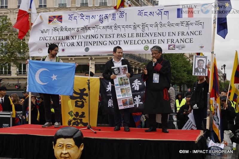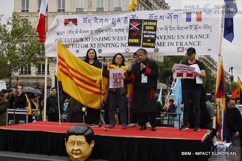 “Dictator Xi Jinping, your time is up”, “no to Chinese totalitarianism”, signs also indicated. Hundreds of protesters flew the Tibetan flag. The crowd chanted in China, « there is no freedom of expression, there is no freedom », « France is a country of human rights and freedom, it is not compatible with his coming to France. »