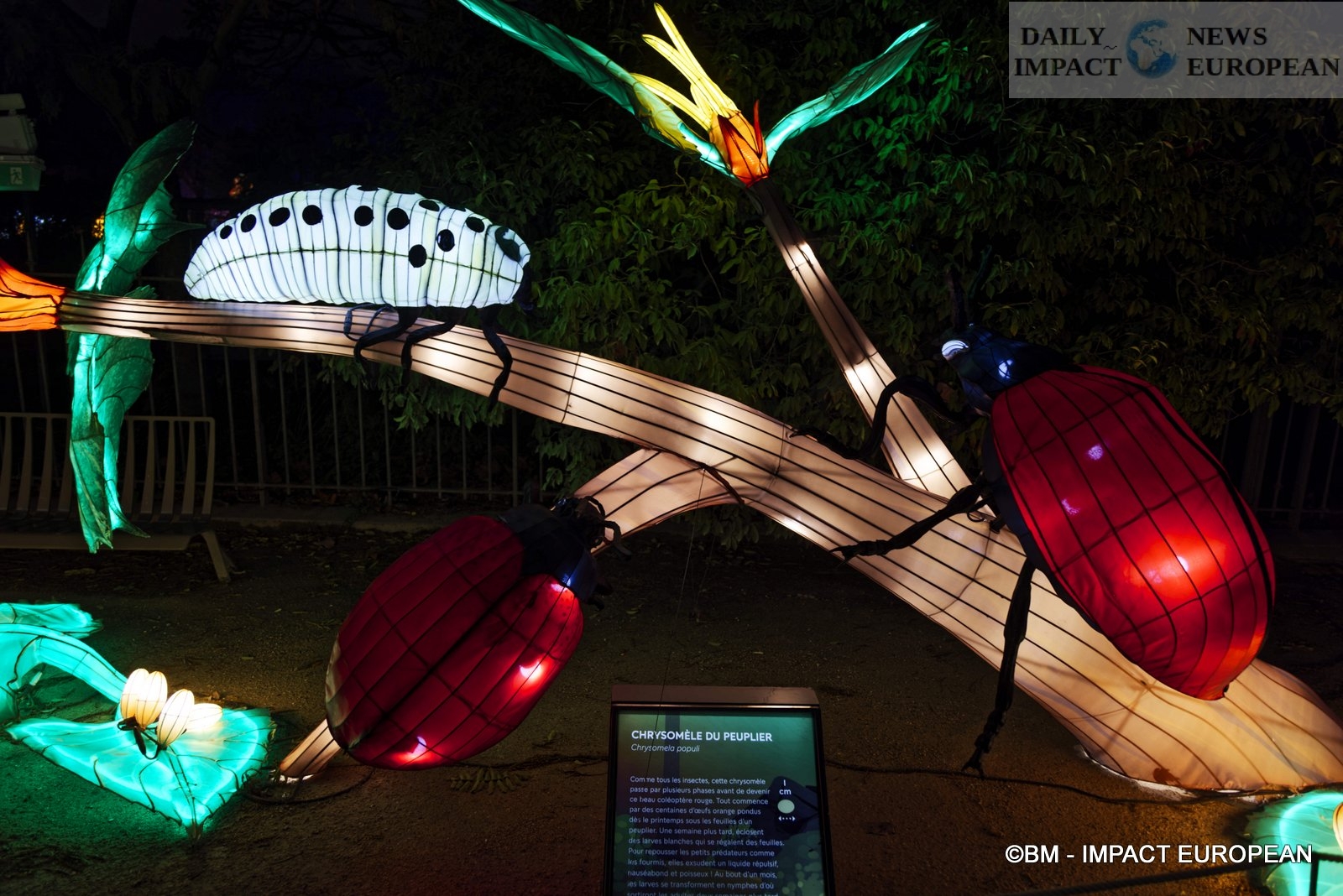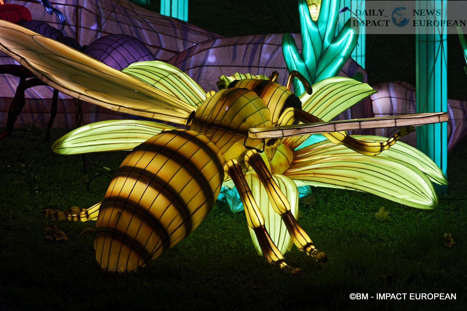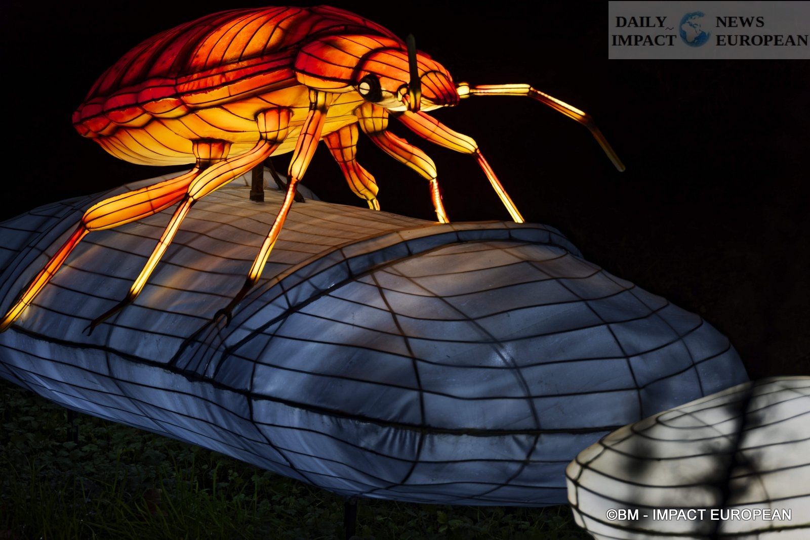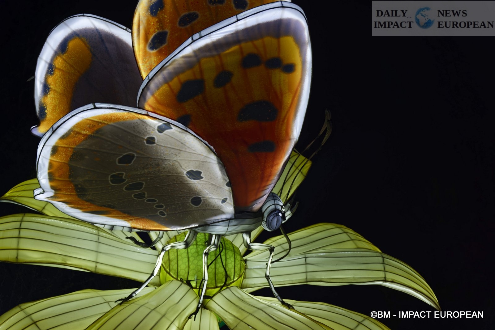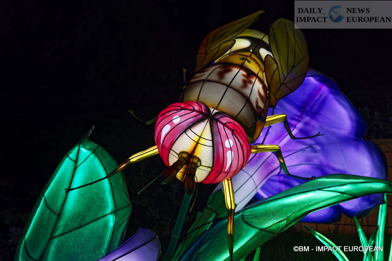 Taking into account energy sobriety, the scientists of the Museum designed the story, the scenario and all the structures. The Chinese partner (Lantern Festival) has produced, using the traditional technique, all the structures made of metal and painted fabrics to give finesse to all the insects, plants and animals represented. The set is equipped with LEDs to have a limited energy cost.
