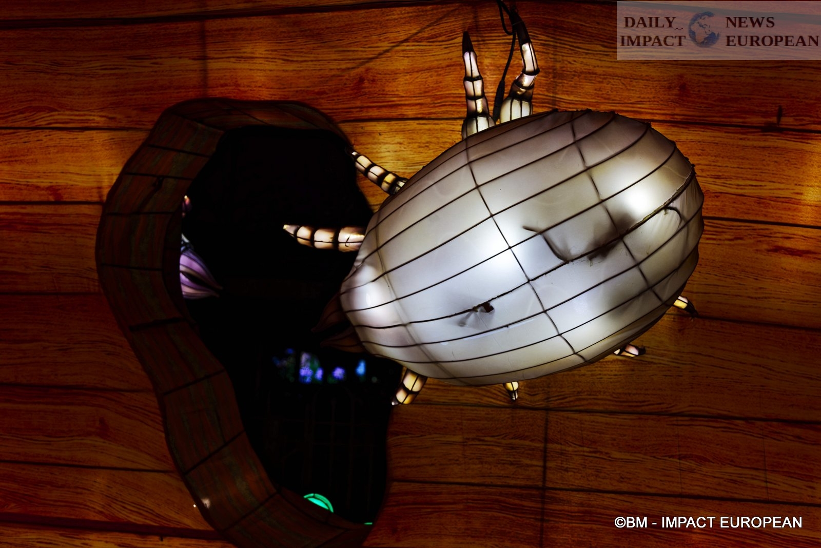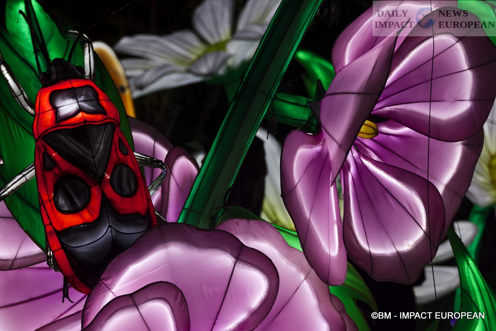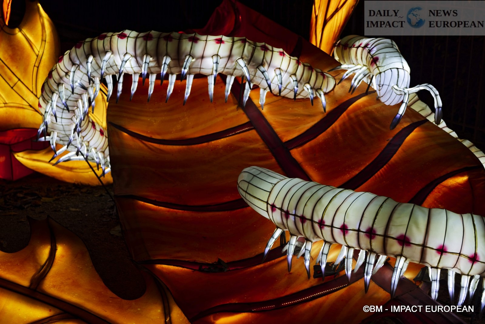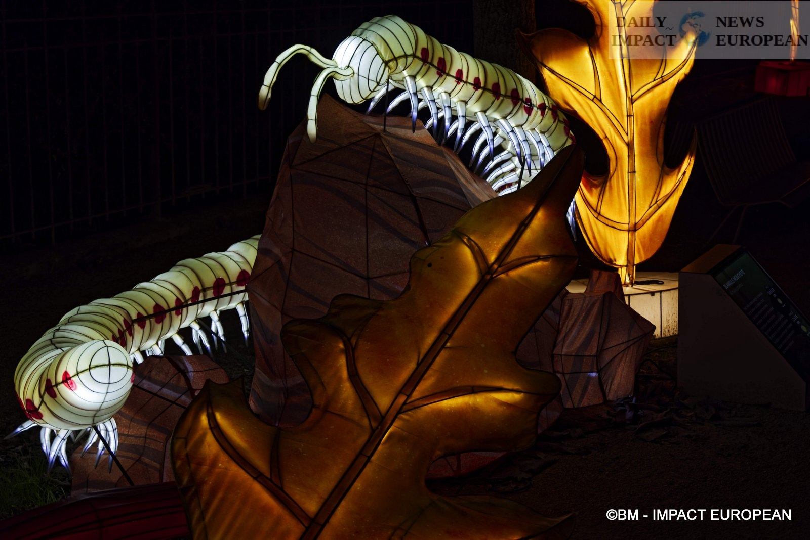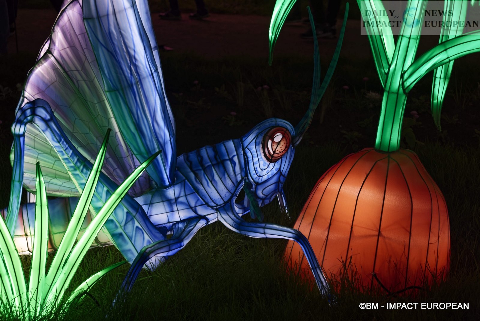 Taking into account energy sobriety, the scientists of the Museum designed the story, the scenario and all the structures. The Chinese partner (Lantern Festival) has produced, using the traditional technique, all the structures made of metal and painted fabrics to give finesse to all the insects, plants and animals represented. The set is equipped with LEDs to have a limited energy cost.