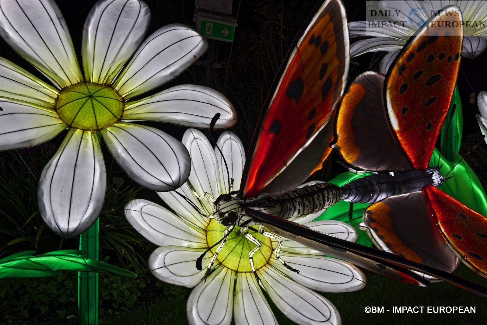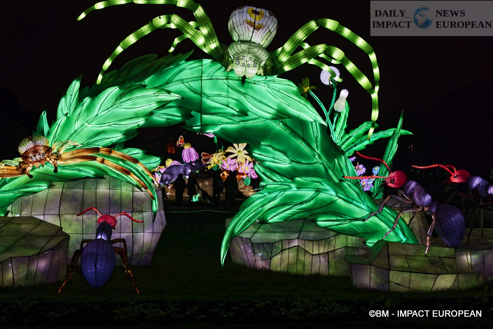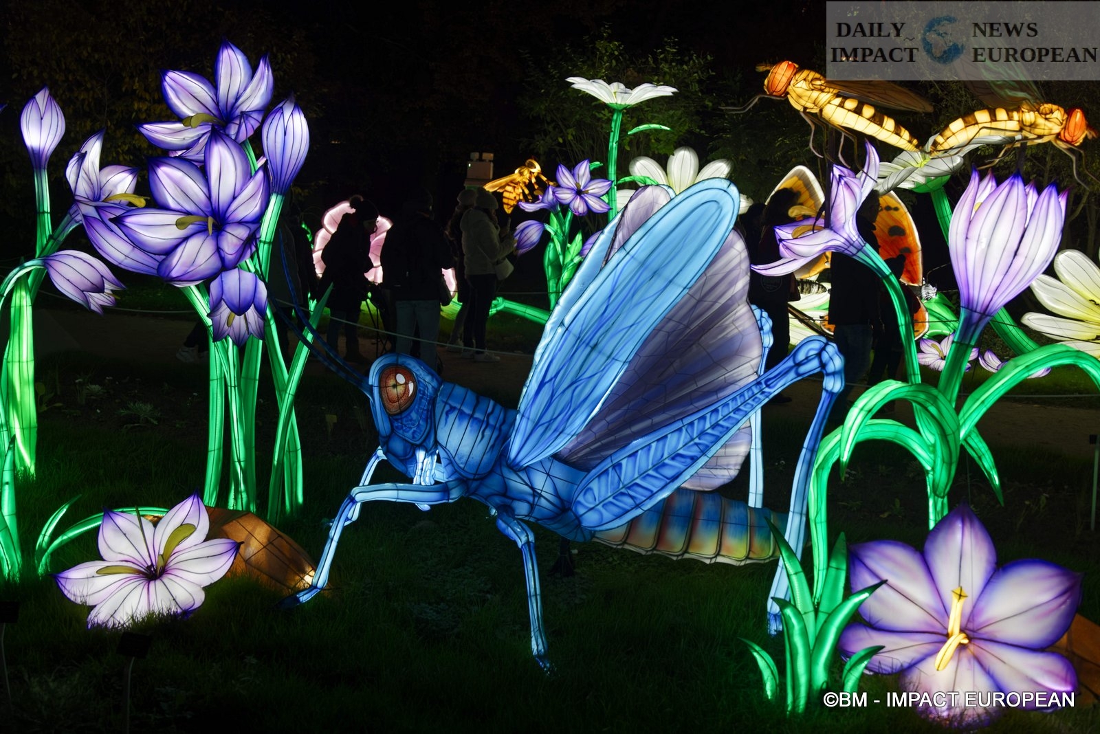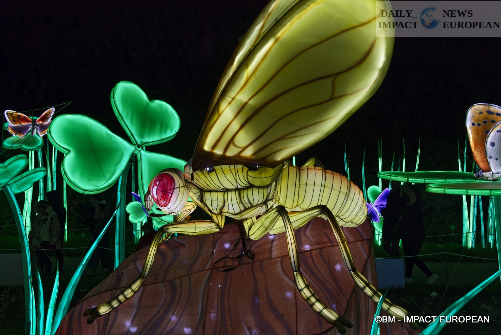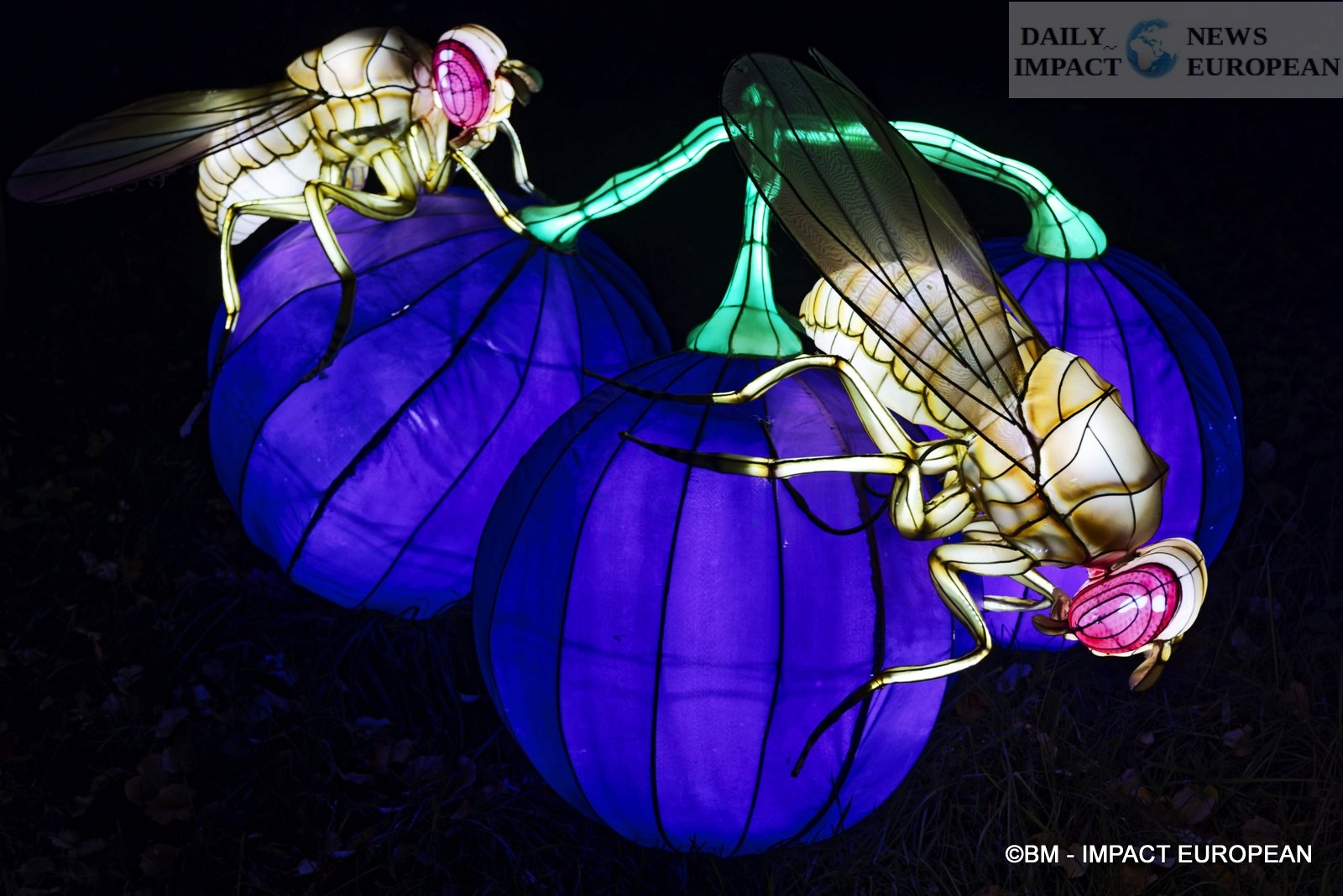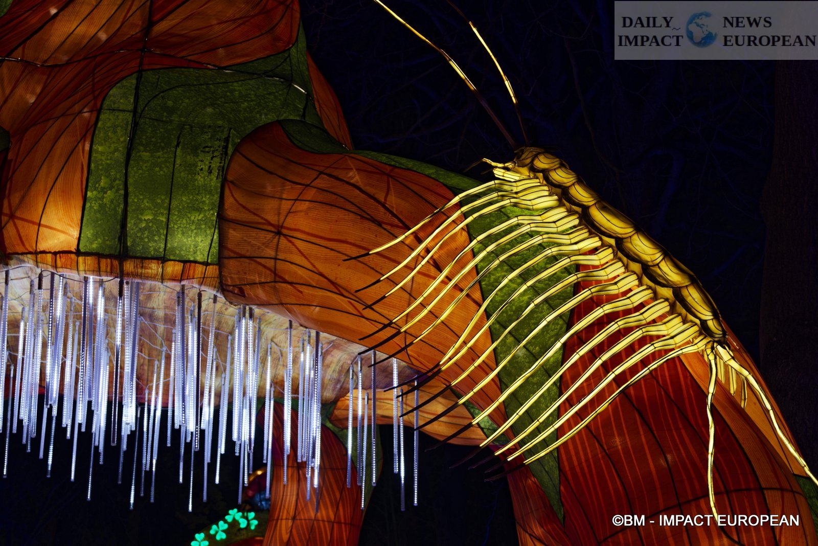 Taking into account energy sobriety, the scientists of the Museum designed the story, the scenario and all the structures. The Chinese partner (Lantern Festival) has produced, using the traditional technique, all the structures made of metal and painted fabrics to give finesse to all the insects, plants and animals represented. The set is equipped with LEDs to have a limited energy cost.