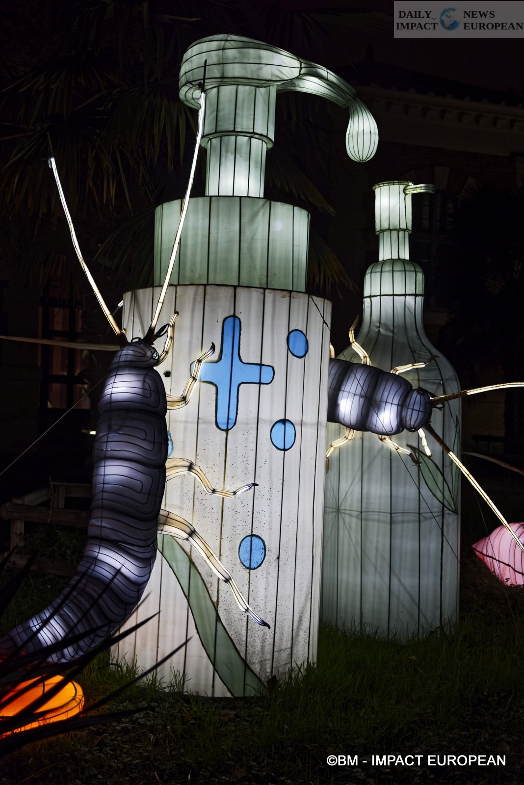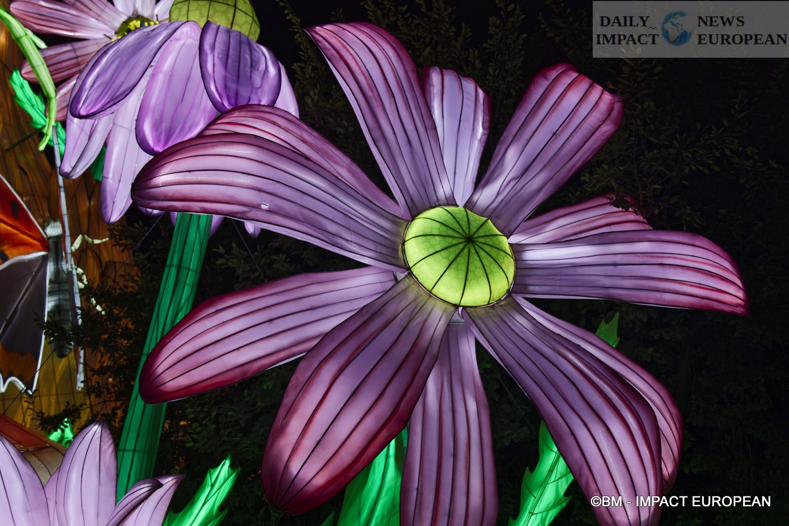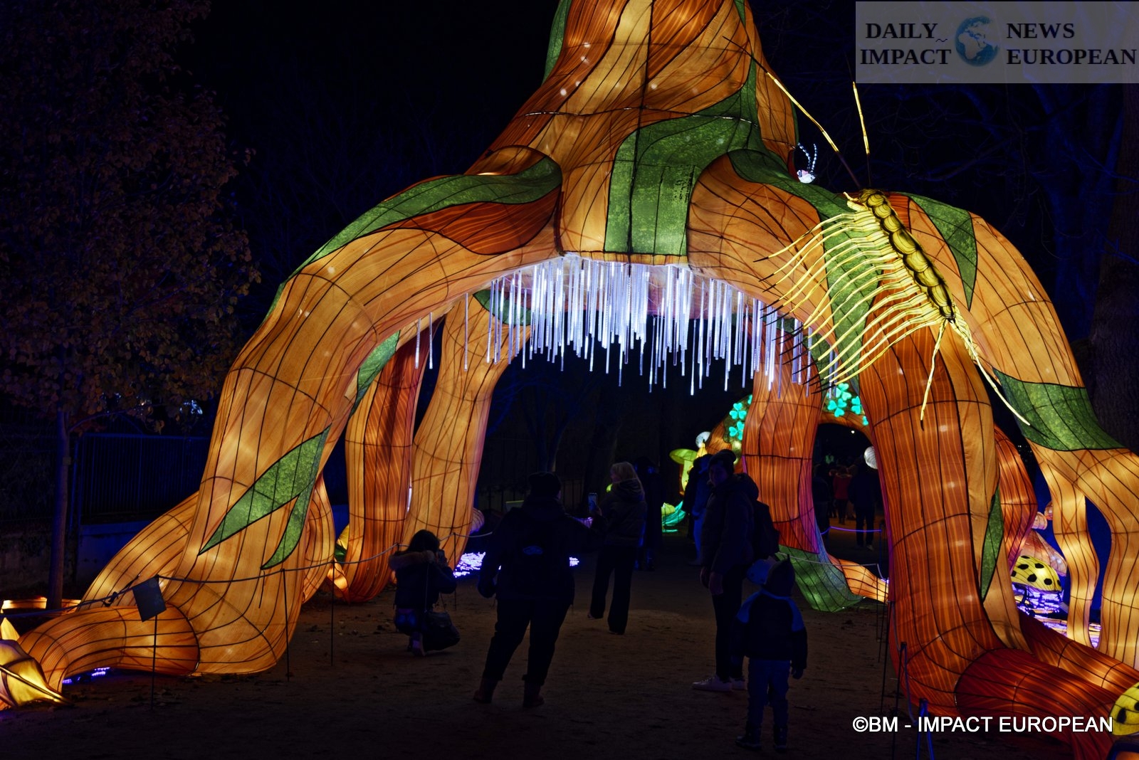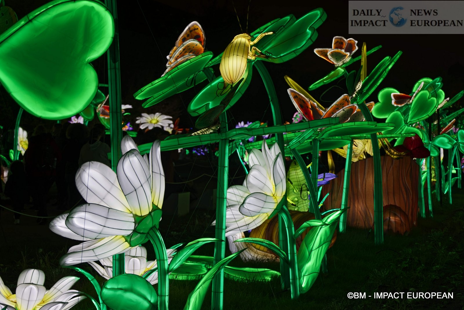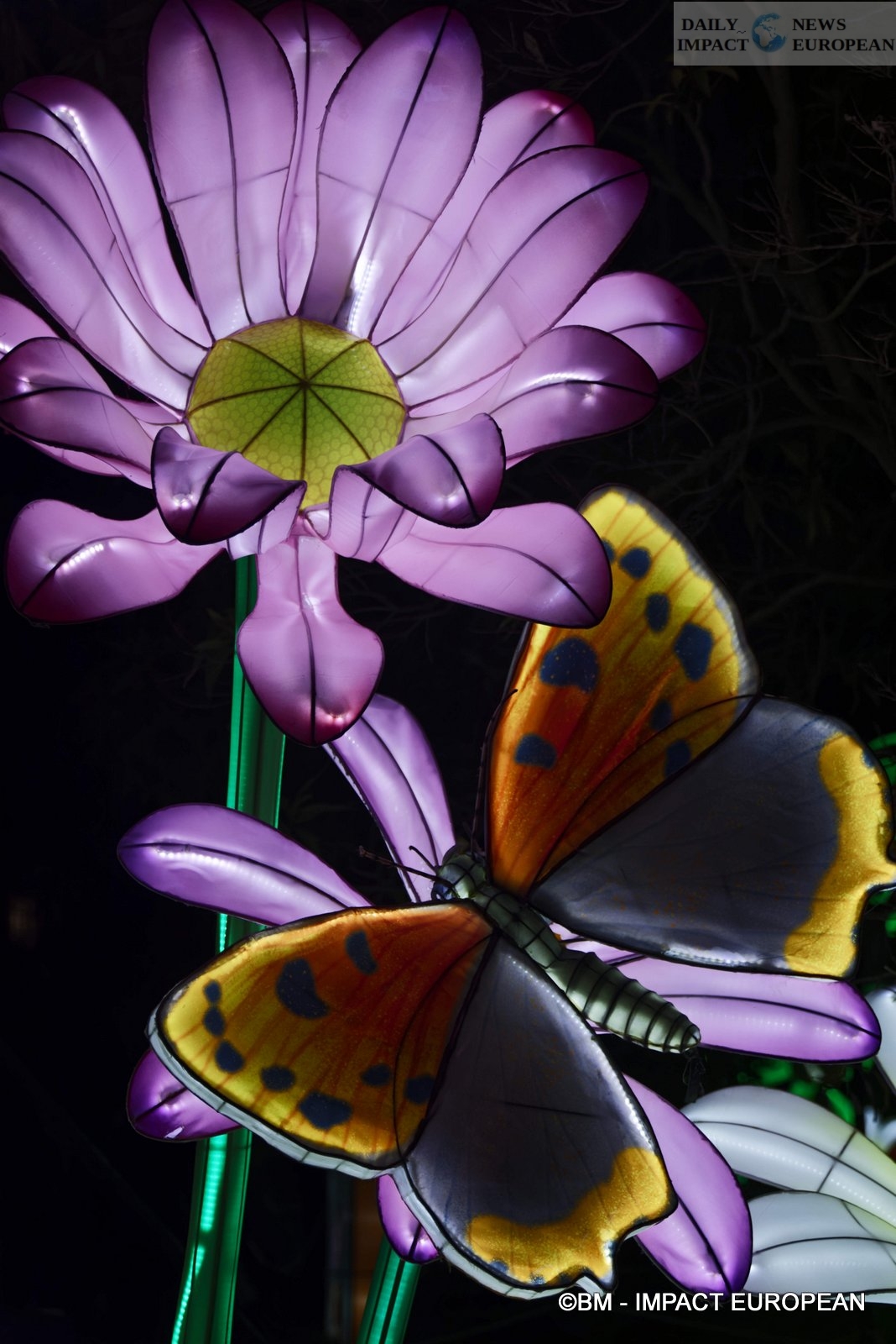 Taking into account energy sobriety, the scientists of the Museum designed the story, the scenario and all the structures. The Chinese partner (Lantern Festival) has produced, using the traditional technique, all the structures made of metal and painted fabrics to give finesse to all the insects, plants and animals represented. The set is equipped with LEDs to have a limited energy cost.