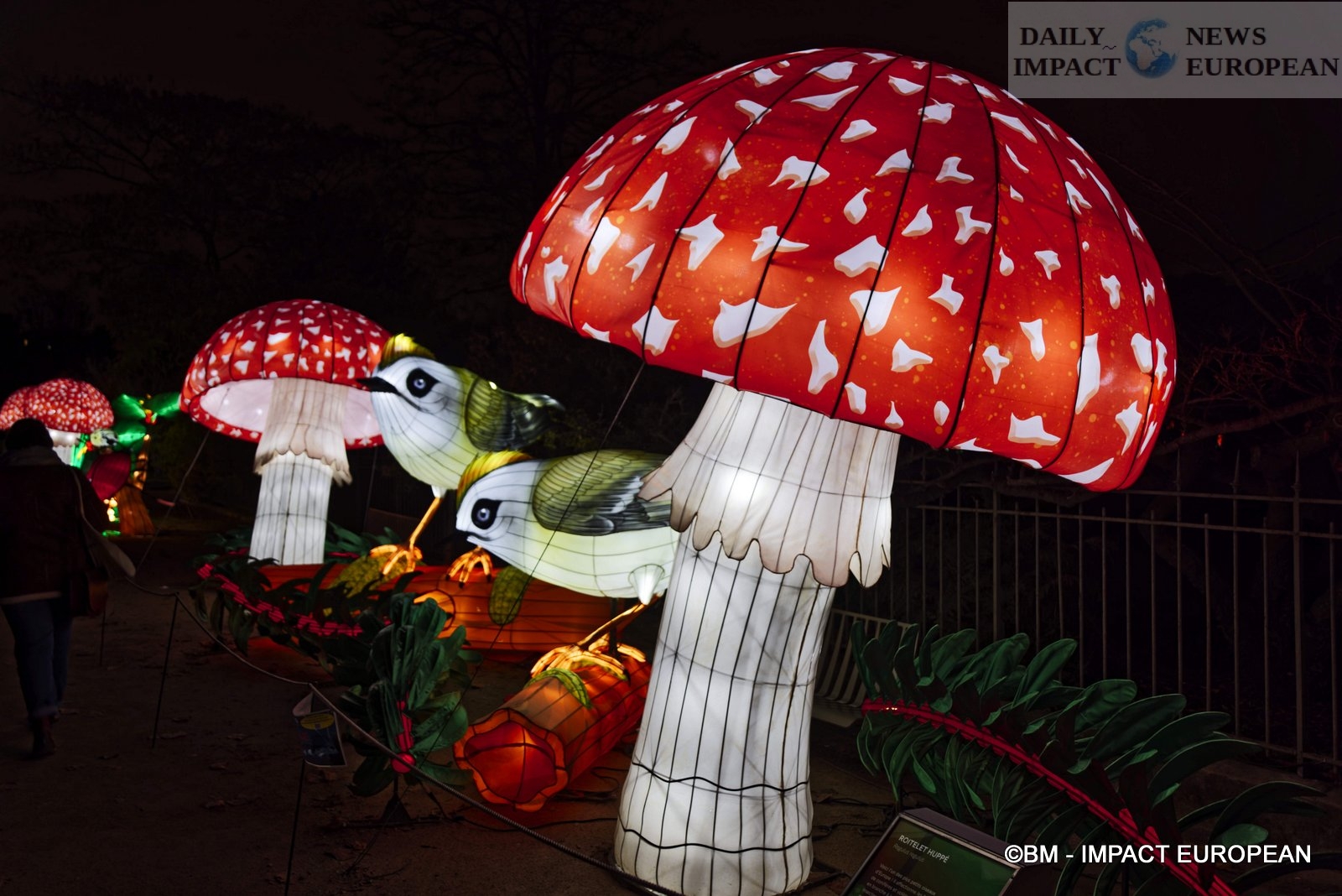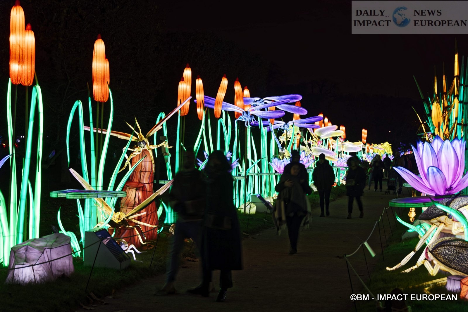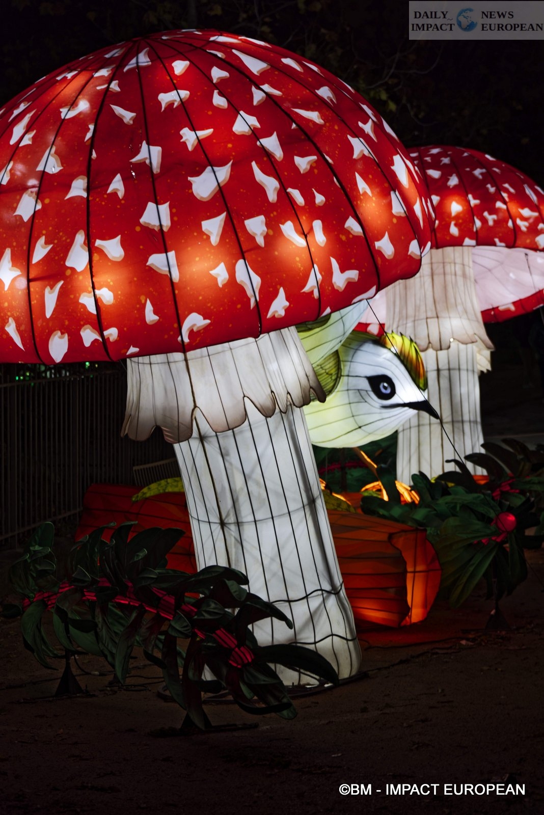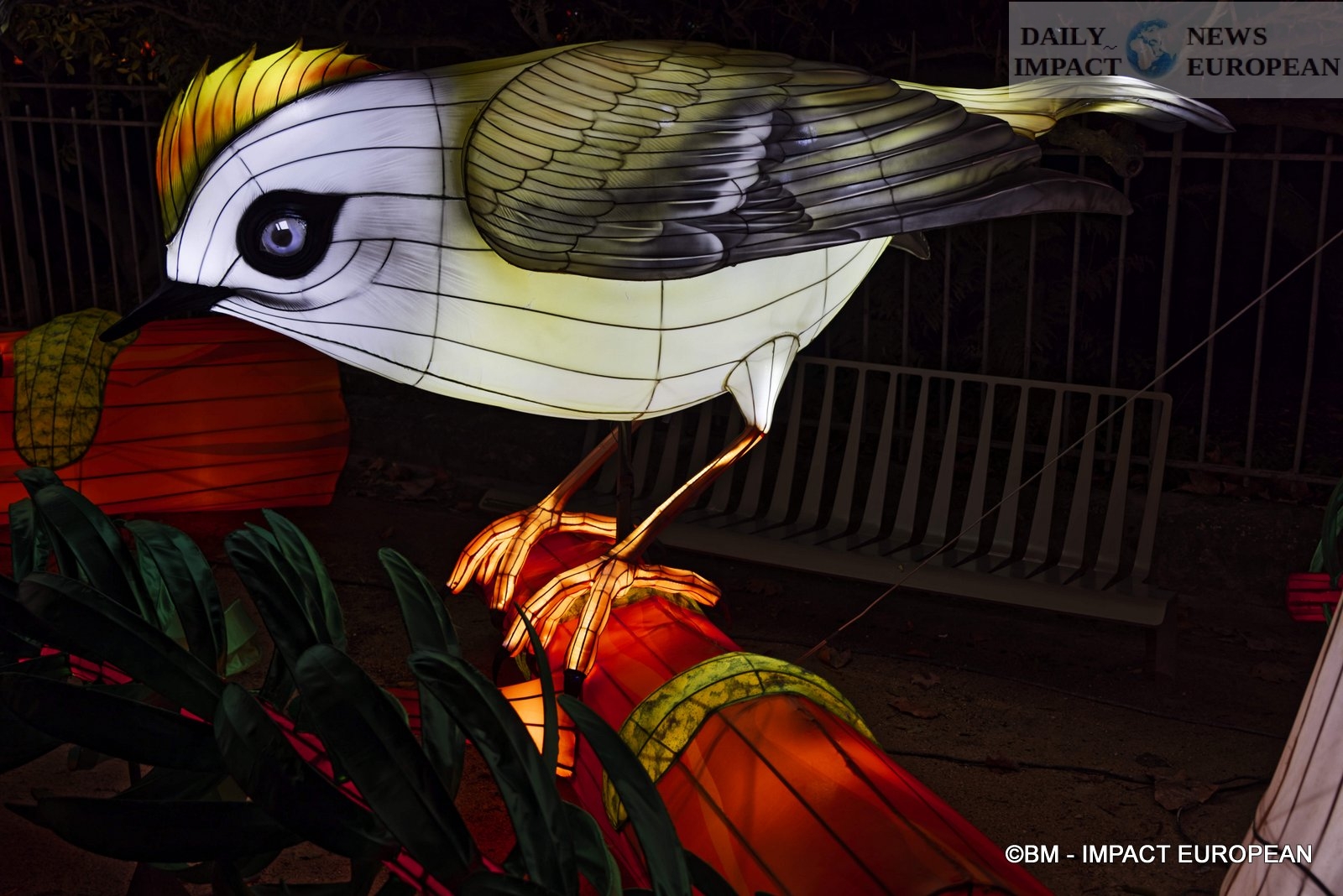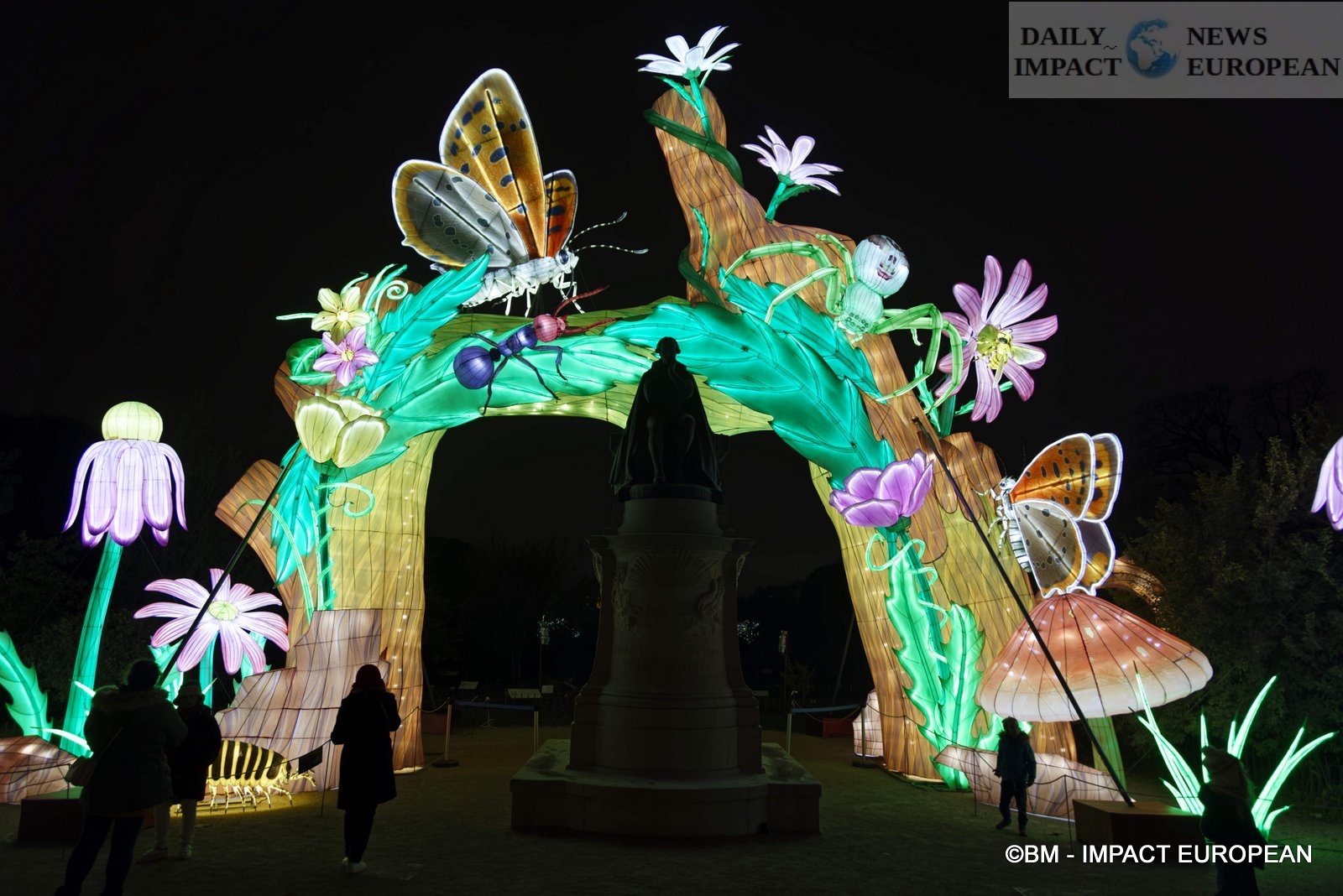 Taking into account energy sobriety, the scientists of the Museum designed the story, the scenario and all the structures. The Chinese partner (Lantern Festival) has produced, using the traditional technique, all the structures made of metal and painted fabrics to give finesse to all the insects, plants and animals represented. The set is equipped with LEDs to have a limited energy cost.