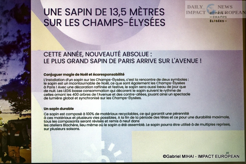 The singer Santa, who performed at the closing ceremony of the Paralympic Games, will be present for the launch where she should perform a song related to the Champs-Élysées. The Band’à Léo, a troupe of 100 musicians, as well as DJ Marine Neuilly are also on the program for this evening. The largest fir tree of 13.5m in Paris will be exhibited on the avenue.