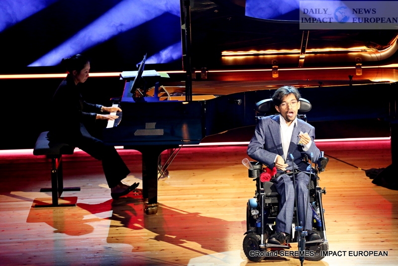 The presenters of the evening, Laurence Roustandjee and Fabrice di Falco (who insisted on being present with the support of crutches for his travels and who will also sing the tender melancholy of the Barcarolle from The Tales of Hoffmann in the final tutti) are also wearing a ylang-ylang flower on the lapel of their jackets as a tribute.