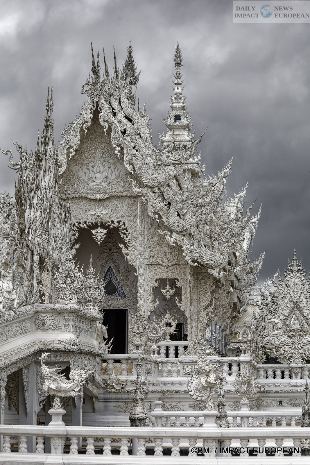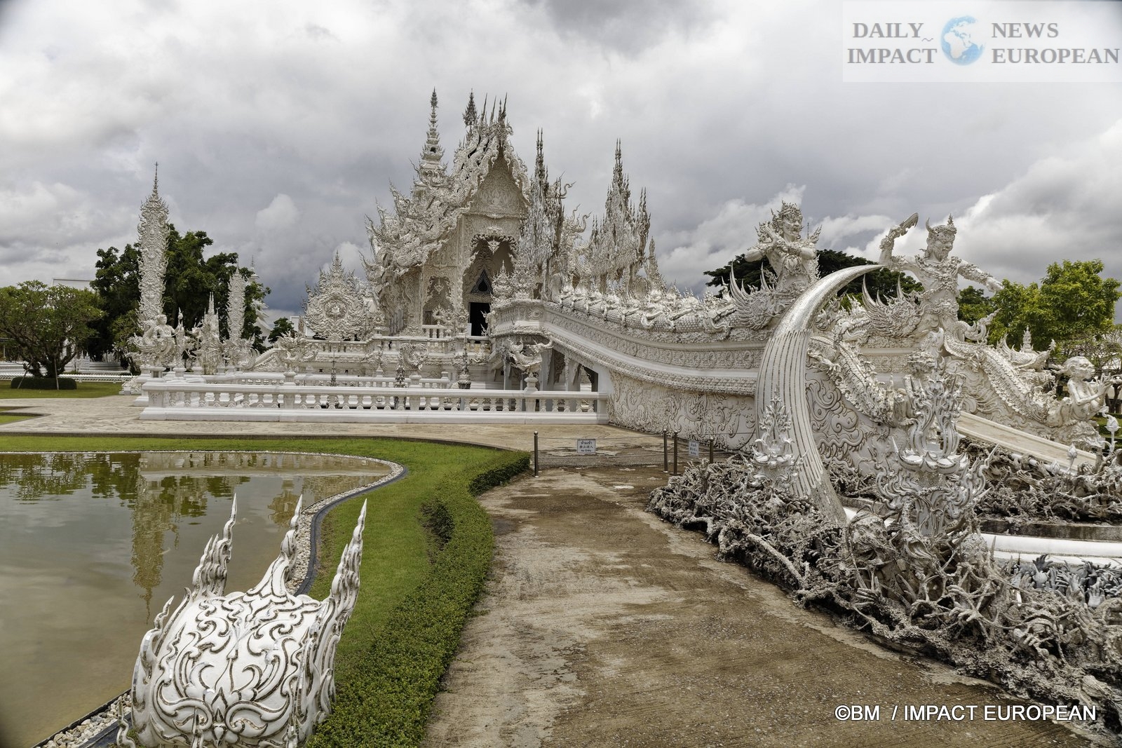 Among the unmissable temples, Wat Rong Khun, also called « White Temple ». Located in the north of the country, on the borders of Laos and Myanmar (ex-Burma), it is 13 km from Chiang Rai, a city in the mountainous province of the same name.