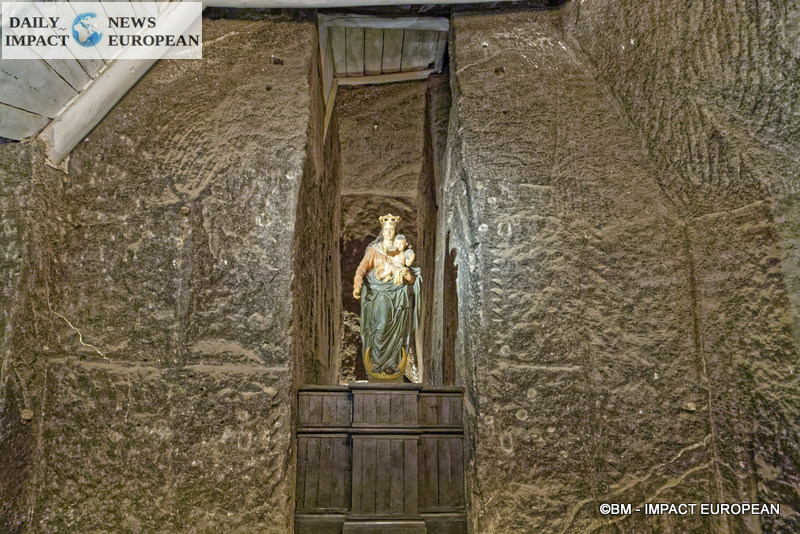 The Sainte-Cunégonde Chapel, 54 meters long, 18 meters wide and 12 meters high. Buried 100 meters underground, this religious building is entirely designed in salt, from floor to ceiling, passing by candlesticks, altar and bas-reliefs, including a certified copy of the « Last Supper » by Leonardo da Vinci …