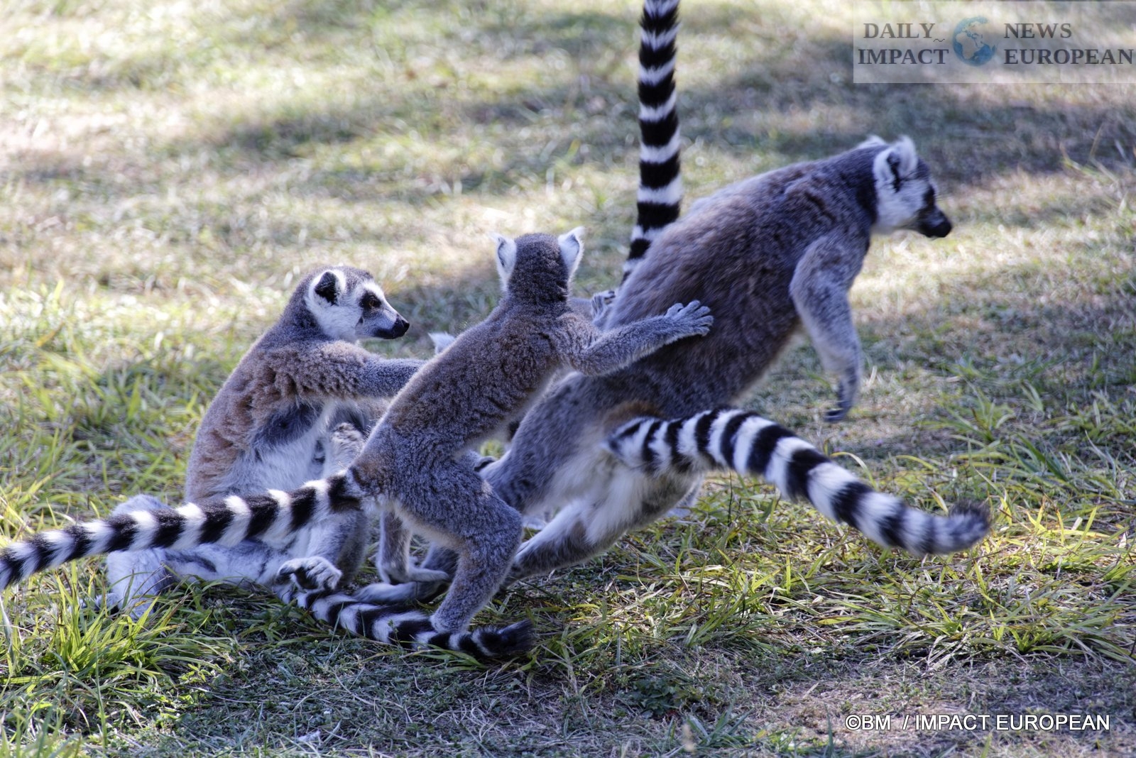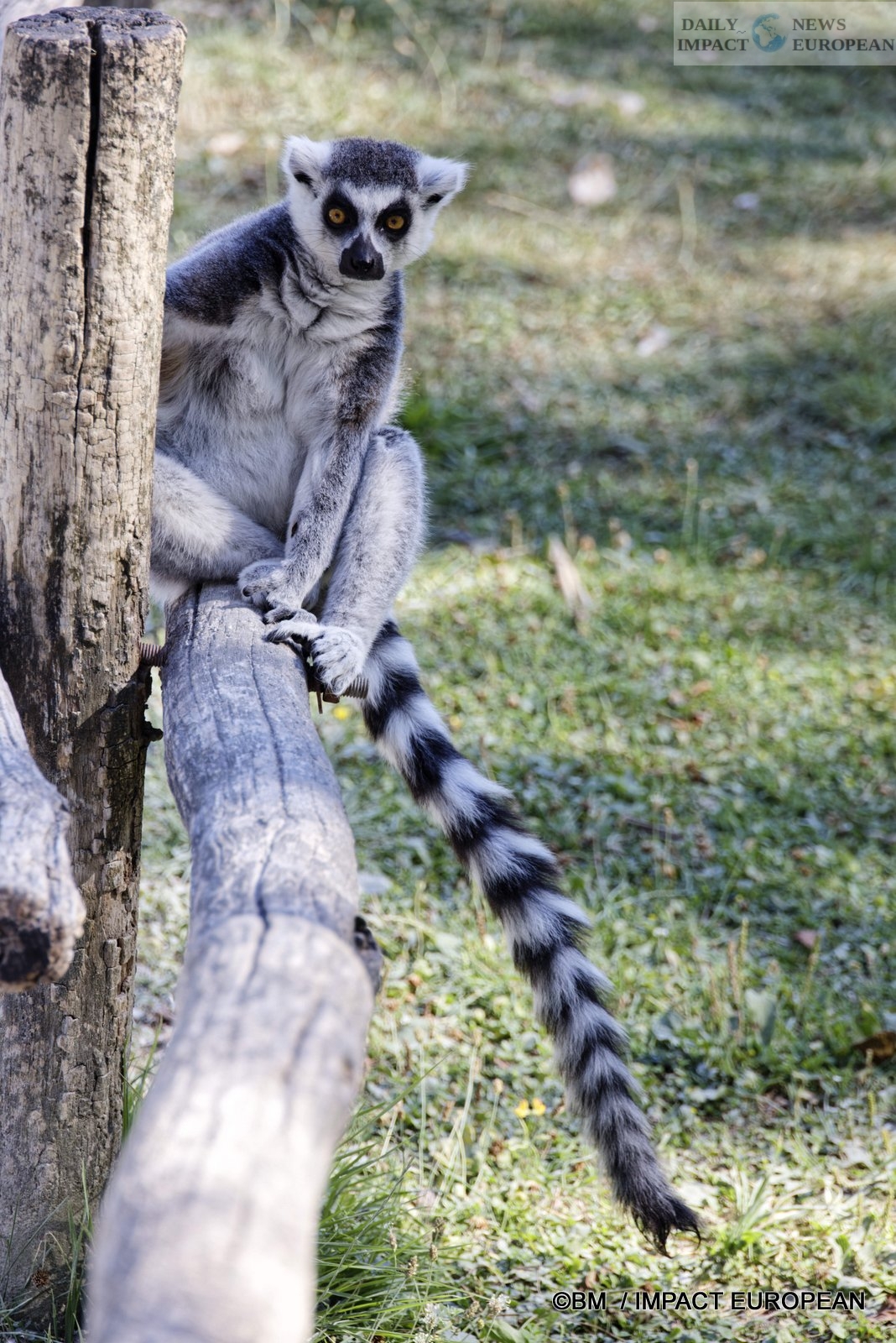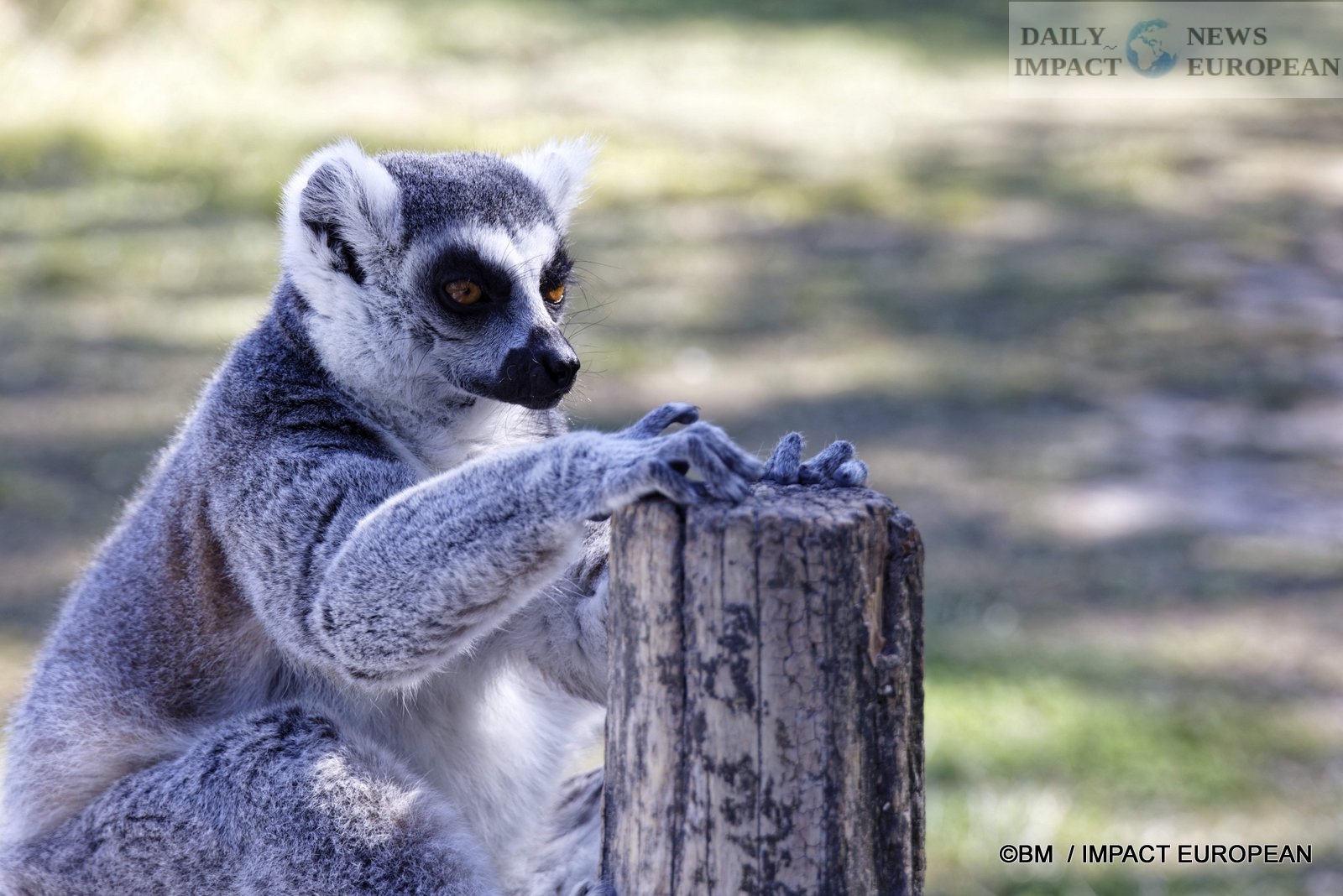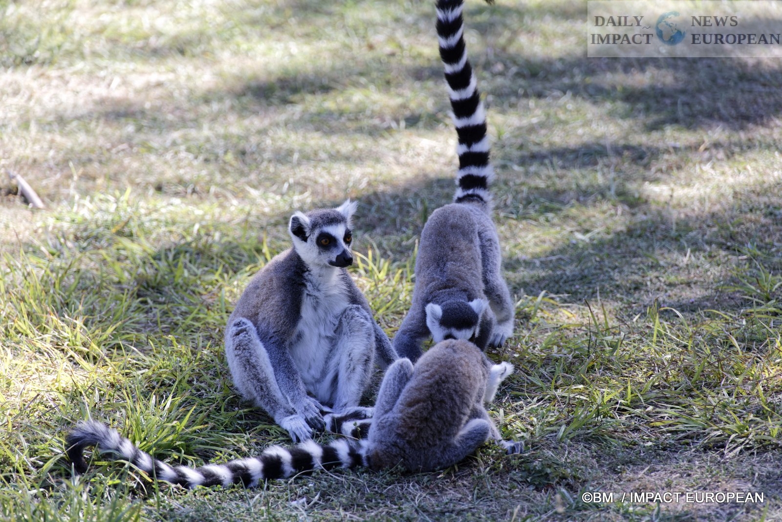 The sector dedicated to lemurs extends over one hectare on an island in the Archipelago of the Monkeys, called the Island of Lemurs. About sixty of these primates of Madagascar live there in freedom. Most of them are of the ring-tailed lemur species, native to the south of the island. It is recognized by its ringed tail and its terrestrial habits. It measures between 39 and 46 cm with a tail of 56 and 63 cm. It is frugivorous and herbivorous, diurnal. The crowned lemur is a little smaller, 31 to 36cm long, its tail varies between 42 and 50 cm. It comes from the north of the island and is also frugivorous and herbivorous.