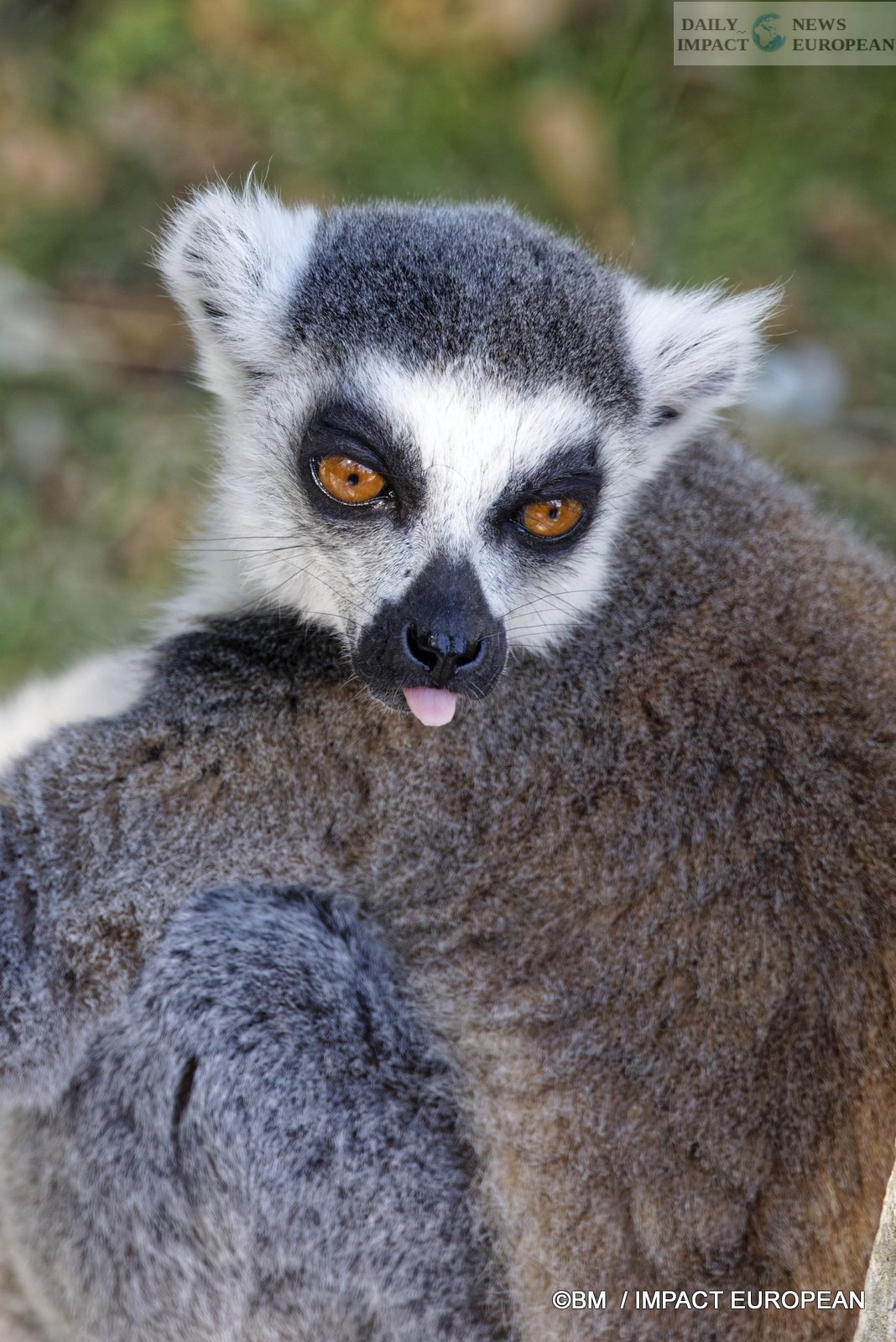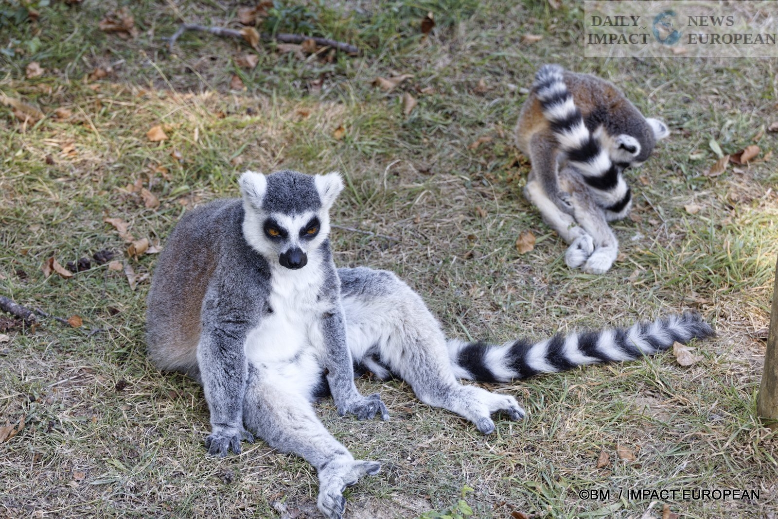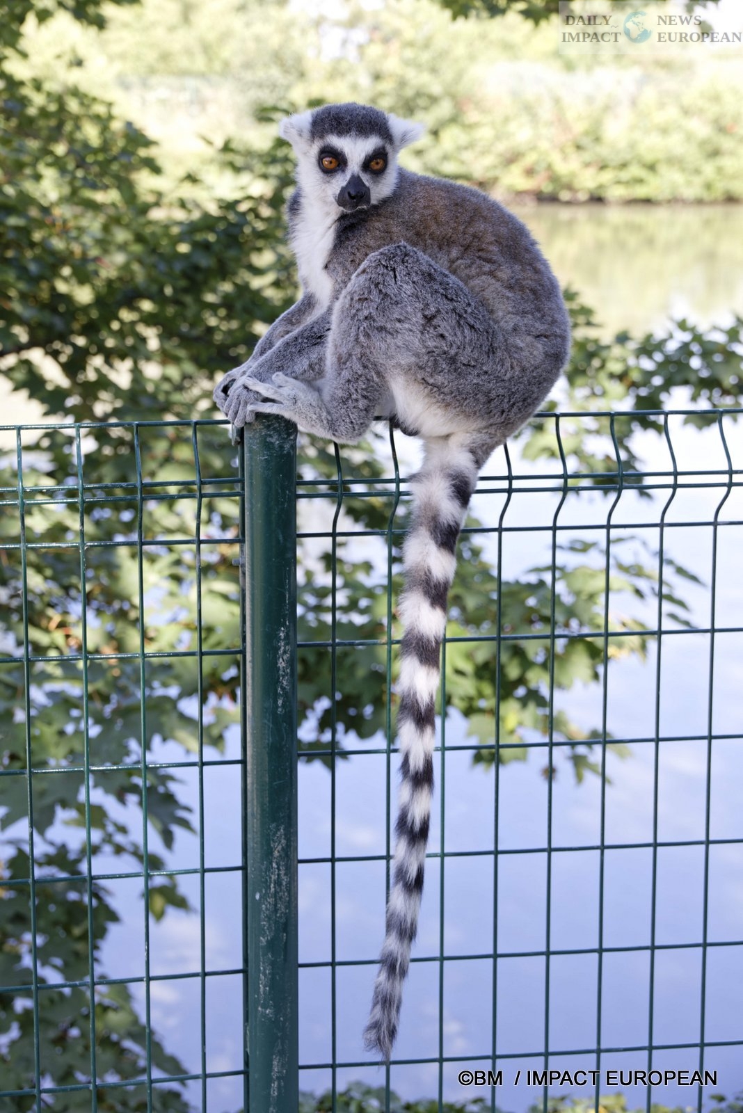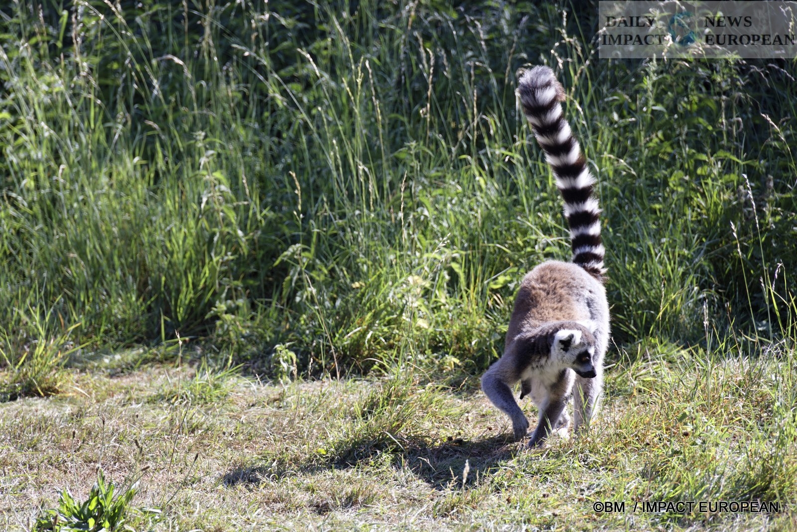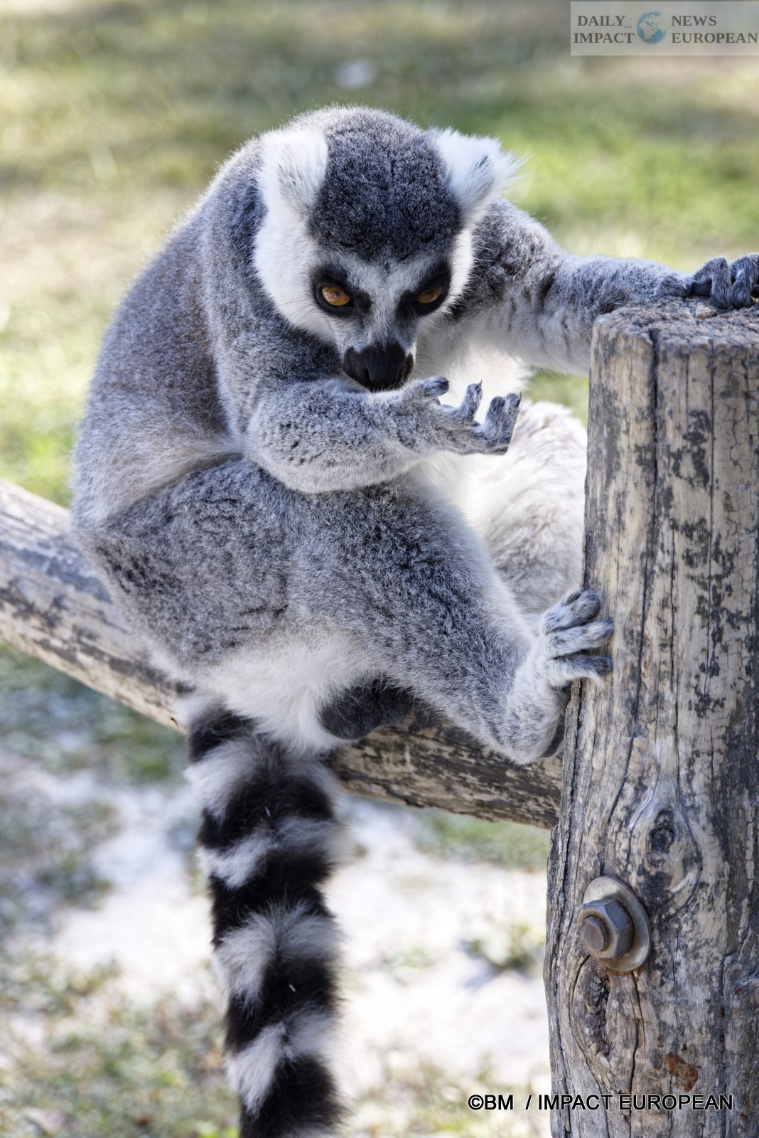 The sector dedicated to lemurs extends over one hectare on an island in the Archipelago of the Monkeys, called the Island of Lemurs. About sixty of these primates of Madagascar live there in freedom. Most of them are of the ring-tailed lemur species, native to the south of the island. It is recognized by its ringed tail and its terrestrial habits. It measures between 39 and 46 cm with a tail of 56 and 63 cm. It is frugivorous and herbivorous, diurnal. The crowned lemur is a little smaller, 31 to 36cm long, its tail varies between 42 and 50 cm. It comes from the north of the island and is also frugivorous and herbivorous.
