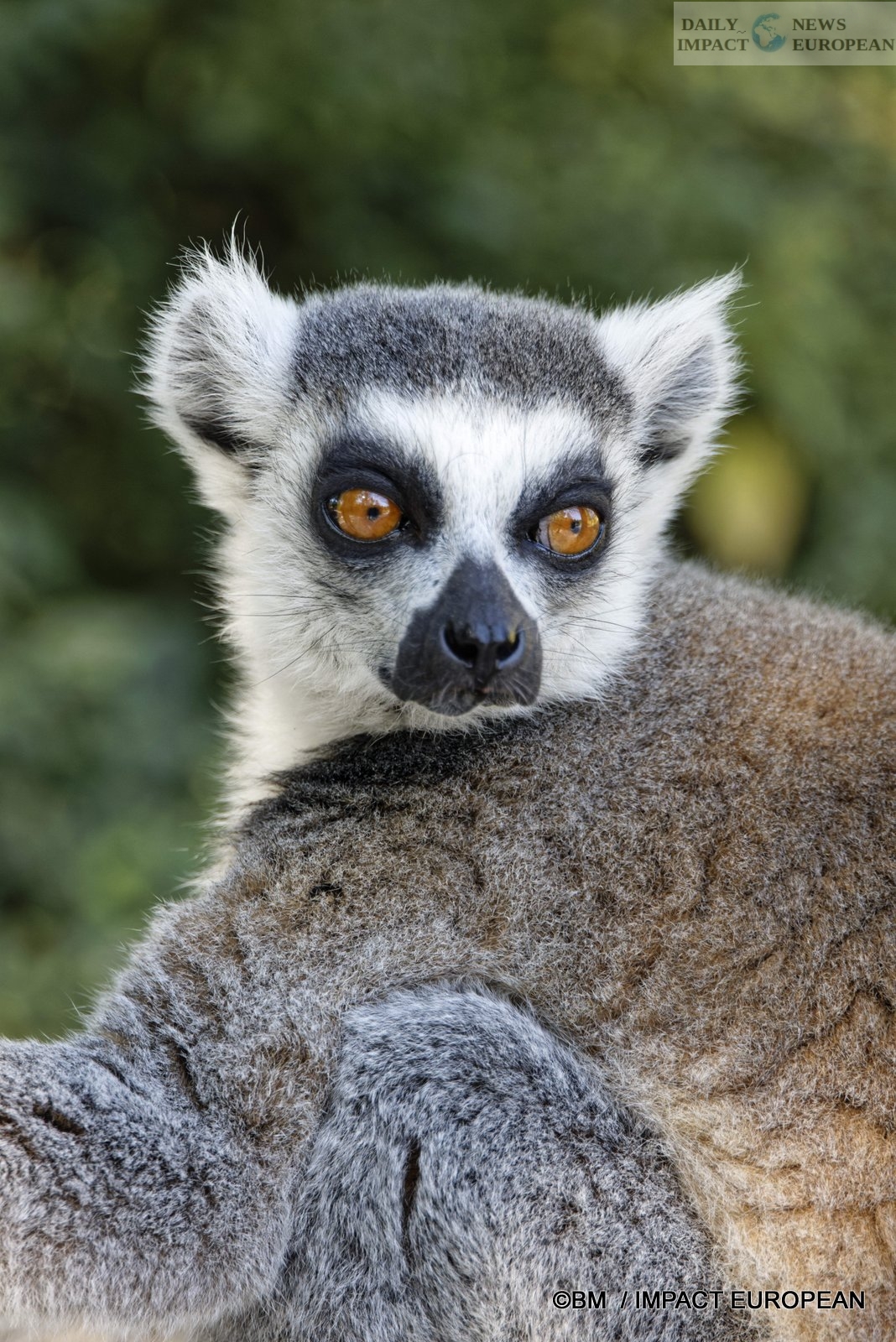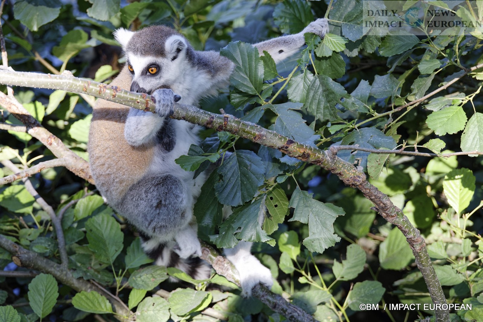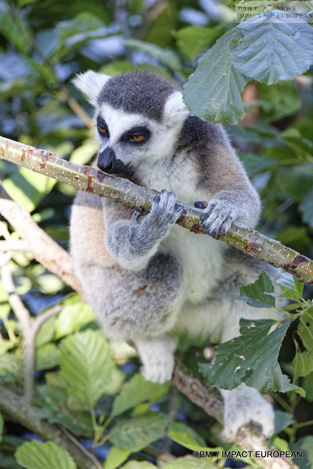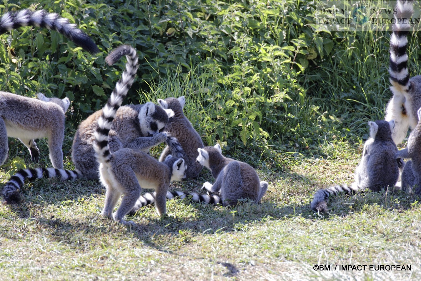 The sector dedicated to lemurs extends over one hectare on an island in the Archipelago of the Monkeys, called the Island of Lemurs. About sixty of these primates of Madagascar live there in freedom. Most of them are of the ring-tailed lemur species, native to the south of the island. It is recognized by its ringed tail and its terrestrial habits. It measures between 39 and 46 cm with a tail of 56 and 63 cm. It is frugivorous and herbivorous, diurnal. The crowned lemur is a little smaller, 31 to 36cm long, its tail varies between 42 and 50 cm. It comes from the north of the island and is also frugivorous and herbivorous.