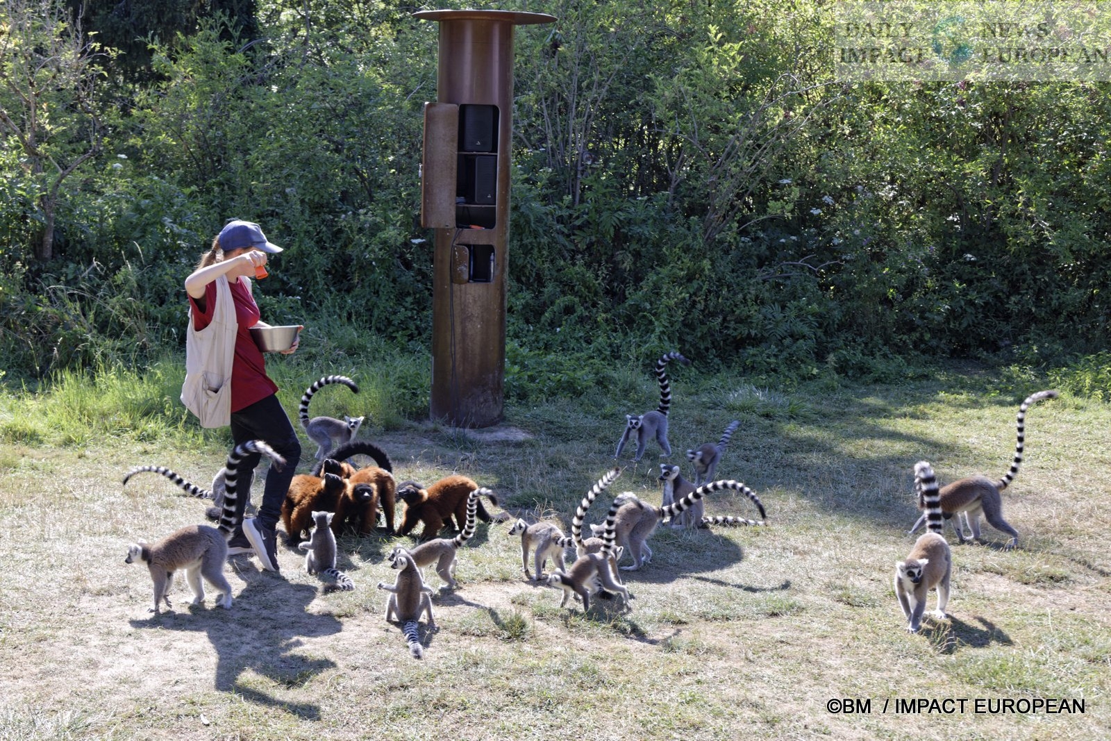 - Safari Saïmiris: Meeting with different monkeys on the Monkey Archipelago, built in 2021, on 3 ha. Each island has a different theme showing monkeys from the New World (yellow-breasted capuchins, black howlers, various spider monkeys, pinched tamarins, Peruvian saimiris, white-faced sakis or pithecia pithecia since 2020), but also from Asia (macaques ouandérou, bonnet gibbons), South America (tamarins, species that have almost disappeared, the golden lion tamarin also has an international day dedicated to it on August 2 every year, and marmosets), or even d ‘Africa (Ethiopia geladas, patas or weeping monkey, the fastest in the world with 55 km/h, since 2020).