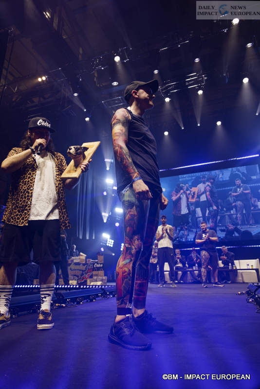 The Mondial du Tatouage is also the possibility of participating in the competition for the best tattoo. The jury is made up of renowned tattoo artists to select the most beautiful tattoo. Among them are Mark Mahoney, Kari Barba, Junko himada, Filip Leu, Luke Atkinson. A trophy is awarded for the most beautiful tattoo and the most beautiful tattooed receive a gift.