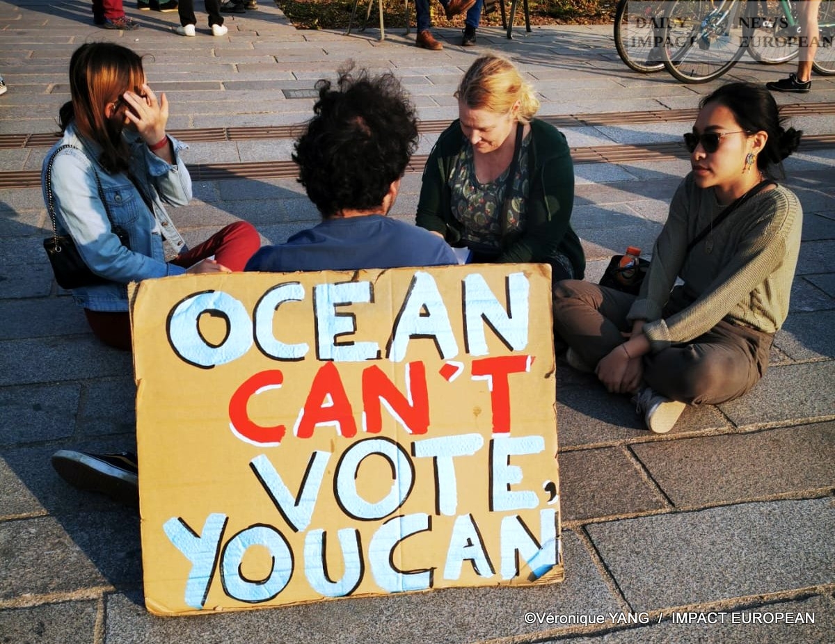 In Paris, young people left the Pantheon for a march in the capital towards Bastille where they ended with a sit-in. Protesters carried signs that read: « Ocean can’t vote you can », « Don’t let her down, she’s so fragile »; « More degrees are better in the bottle »; Riddle: Between man and plastic, which will disappear first? »; « Oil, gas and nuclear, energies of war, Stop destruction »…..